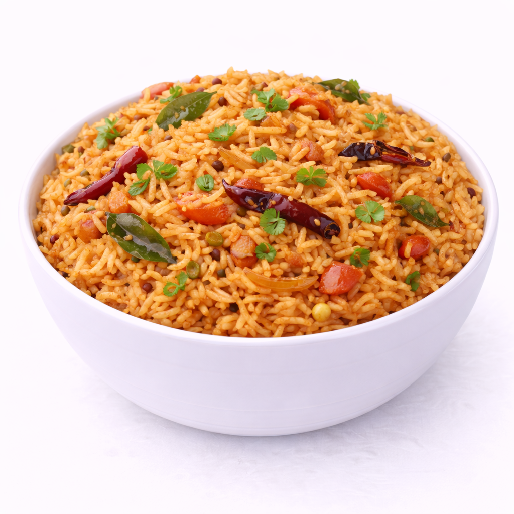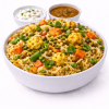 Fragrant basmati rice layered with mixed vegetables and aromatic Indian spices, cooked to perfection.