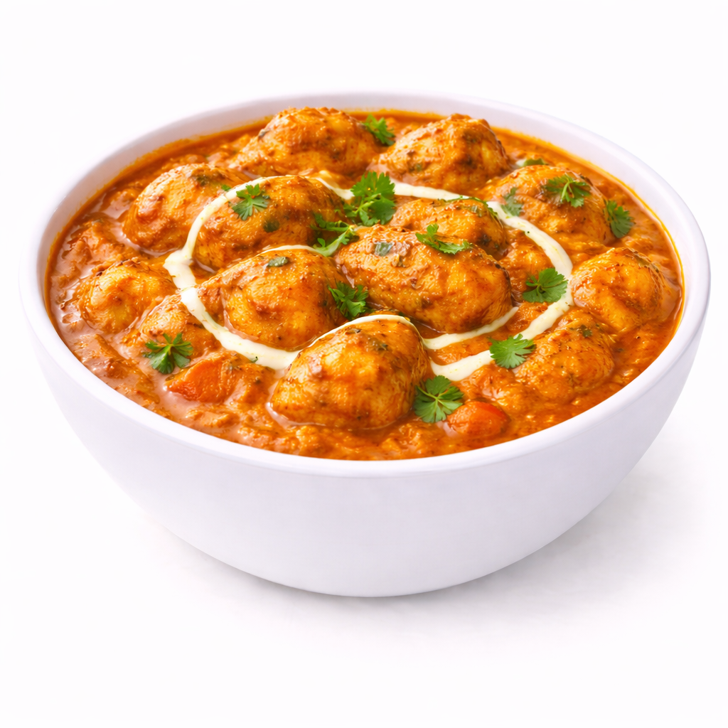 Boiled eggs simmered in a fragrant onion, tomato, coconut-based gravy with aromatic spices.