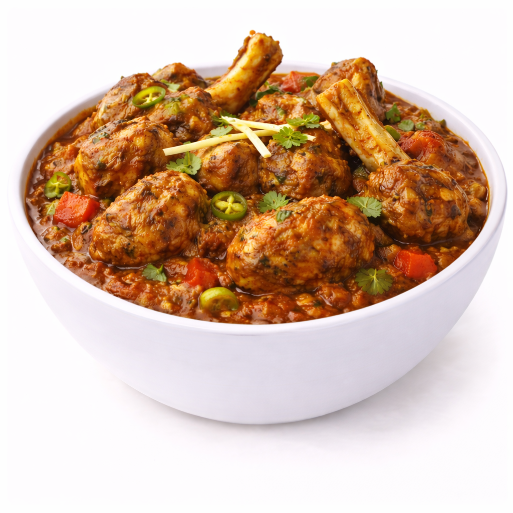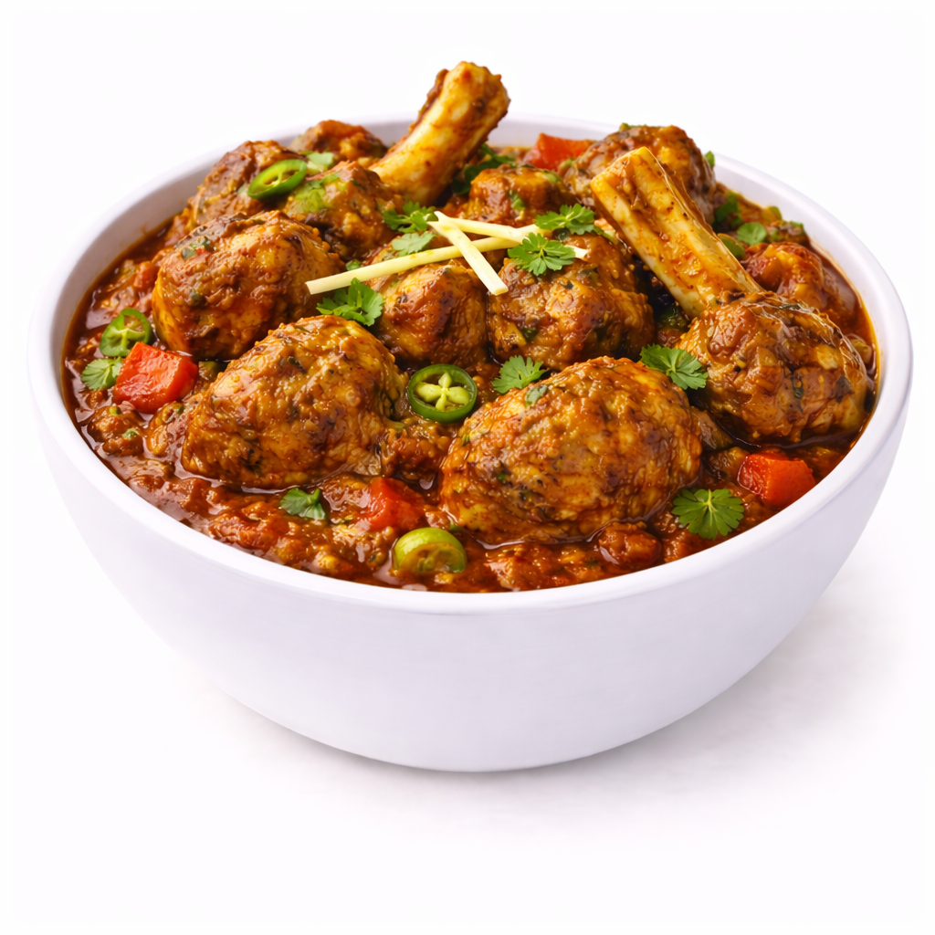 One-kg lamb karahi slow-cooked in a rich, spicy onion-tomato gravy.