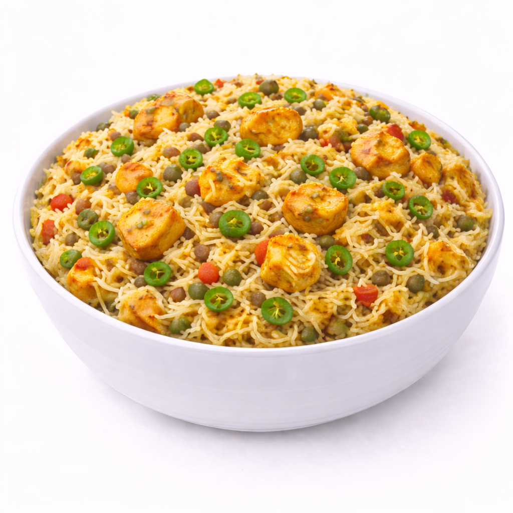 Fragrant basmati rice cooked with paneer and aromatic spices for a rich, flavourful biryani.