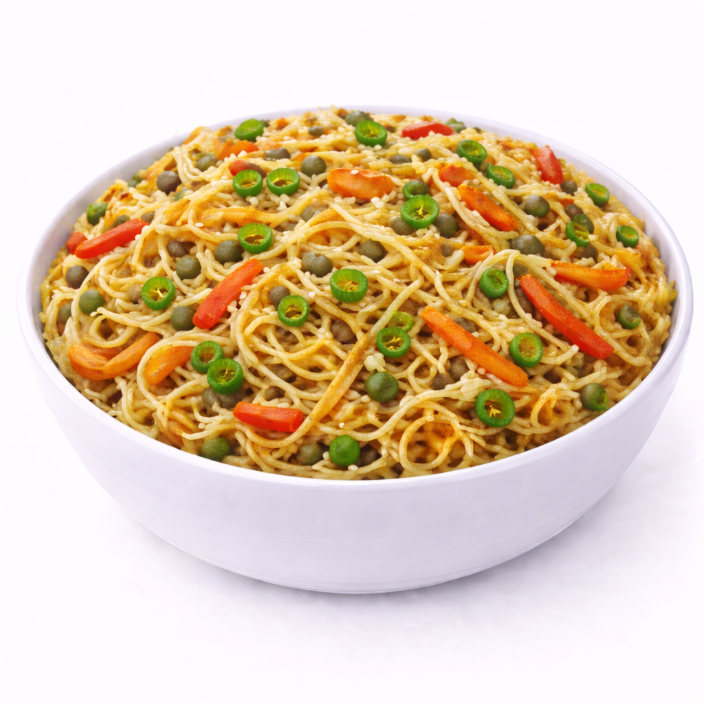 Stir-fried noodles with mixed vegetables, savoury sauces, and spices for a flavourful dish.