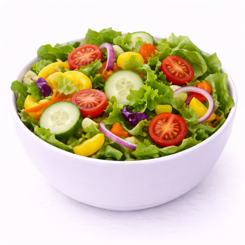 Fresh mix of lettuce, cucumber, tomato, carrot, and lemon for a light and refreshing salad.