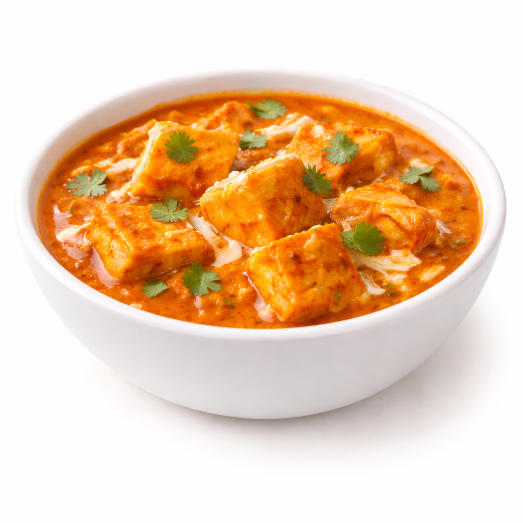 Paneer cubes in a creamy tomato & onion gravy with cashew, coconut, and aromatic spices.